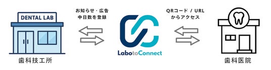 ラボトコネクトは、歯科技工所と歯科医院の接点を継続的に強化するクラウド型の技工納期プラットフォームです。