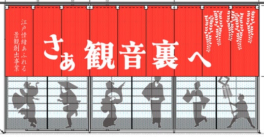 今プロジェクトではそんな江戸の風景を再現すべく、観音裏の飲食店を中心とした約150店舗の店先に揃いの「のれん」を設置いたします。