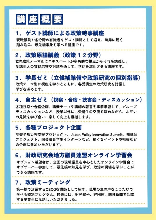 [日本政策学校 春学期 新規受講生も募集中]