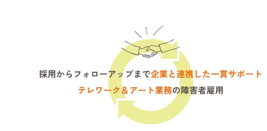 人的リソースと、受け入れ対応コストをかけない障害者雇用の設計として「いろは」では、どの業種でも現場負担無く導入できる「テレワーク」での「アート業務」を活用した雇用を提案しています。