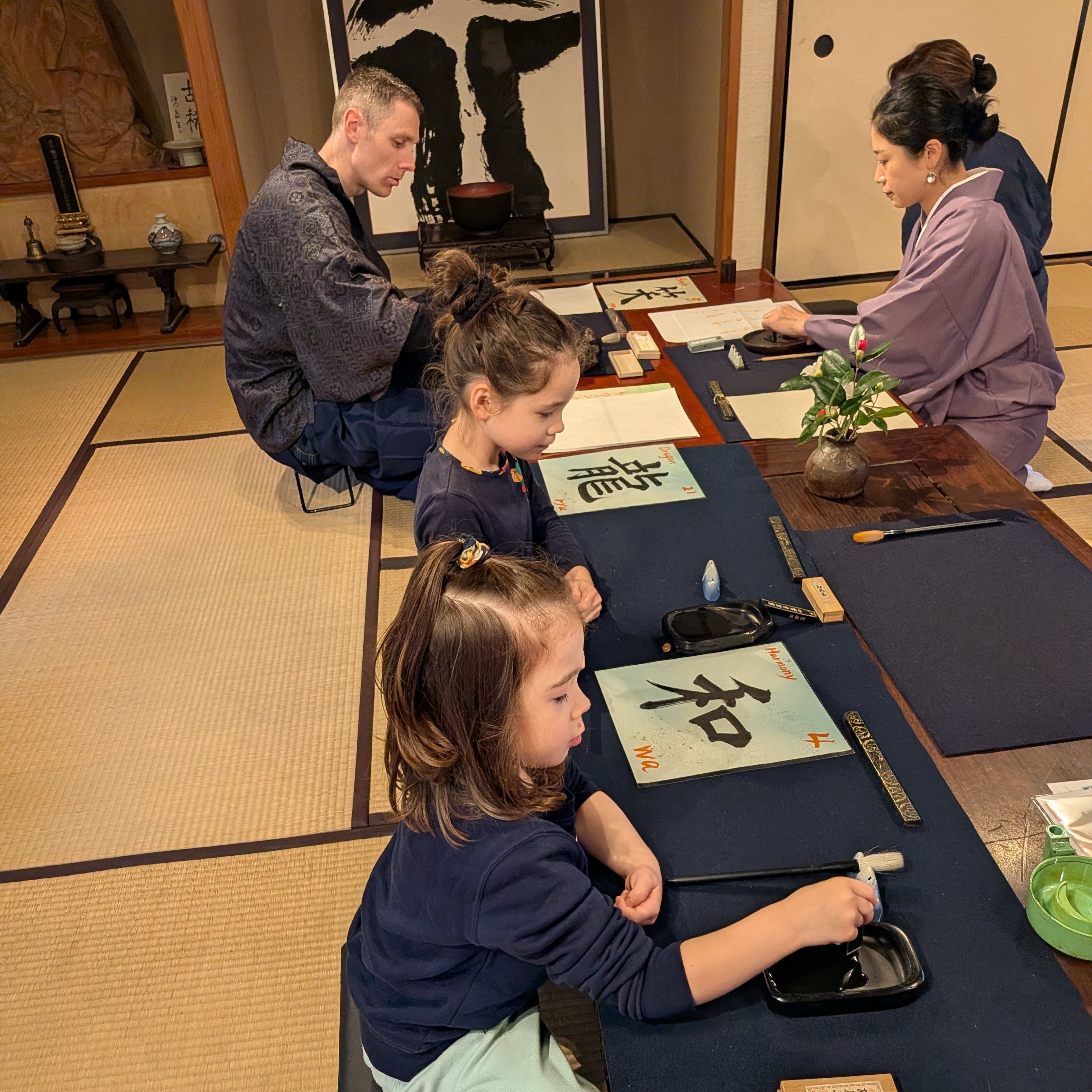 大人も子どもも墨の香りと畳の感触に包まれながら、世代や国籍を越えて、日本文化の“深い時間”を共有するひと時となりました。