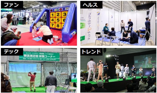 ゴルフはそれぞれの体力レベルに合わせて長く続けられ、老若男女が同じフィールドで楽しめることから“生涯スポーツ”の代表格と言われております。「人生100年時代」が謳われるなか、「JAPAN GOLF FAIR 2026」では、「ファン」「ヘルス」「テック」「トレンド」の4つのテーマで、サステナブルで生涯続けられるゴルフの魅力を提案してまいります。主なメーカーの試打体験やプロのトークショーなど来場者参加型コンテンツを楽しむ「ファン」、生涯ゴルフを続けられるための最新トレーニングやイベントを開催する「ヘルス」、最新技術やAIを活用した最新ゴルフテクノロジーを体験できる「テック」、最新のゴルフファッション やアイテムなど最新「トレンド」の集結と、さまざまなテーマで実施させていただきます。