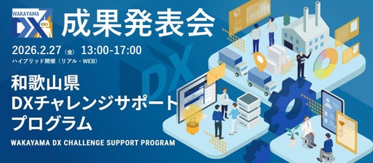 和歌山県は、DX推進を加速させるための伴走型支援プログラム「DXチャレンジサポートプログラム」の成果発表会を、2026年2月27日(金)に開催します。県内企業が取り組んだ最新のDX事例を直接聞ける貴重な機会です。経営者、システム・DX推進担当者などの皆様、ぜひご参加ください。参加料は無料です。