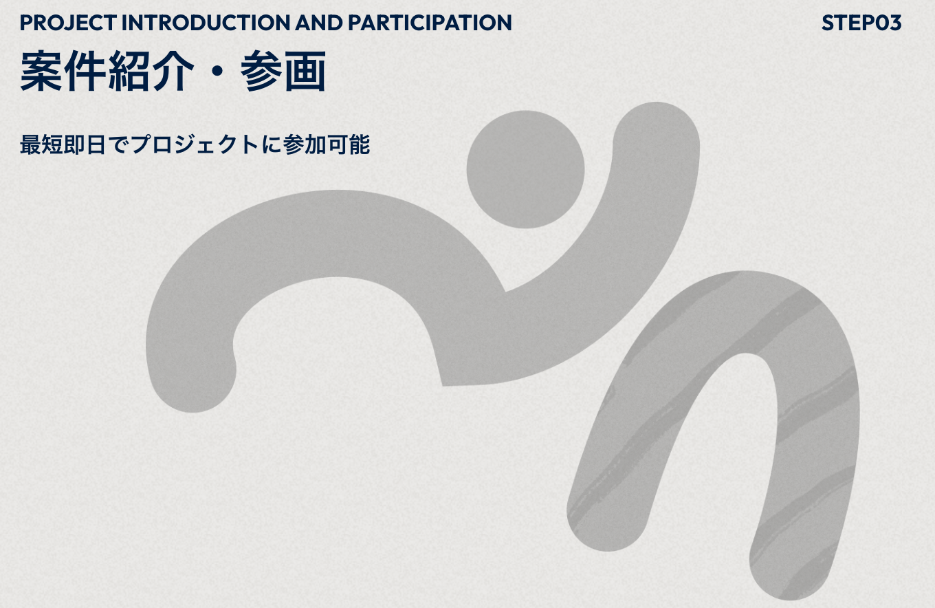 参画実績がデータ化され、次回以降の紹介や評価に反映。経験を重ねるほど、より挑戦的な案件に出会えます。
