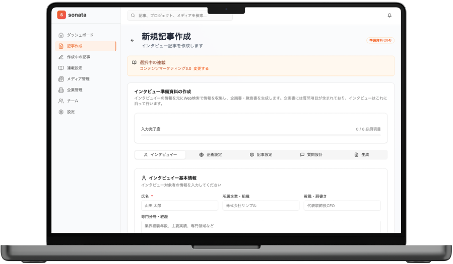 sonataは、インタビュー記事生成における独自手法について特許を出願(特願2025-146411)しており、企画段階から公開までを一貫してサポートします。