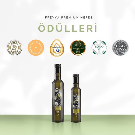 Freyya Premium Nefes (フレイヤの吐息)トルコ・アナトリア地方の古代品種「ハヌム・パルマウ種」を使用。芯のある味わいとスパイシーな余韻が特徴で、肉料理など輪郭の強い料理にも負けない存在感を放ちます。高いポリフェノール含有量でも知られ、国際的なオリーブオイルアワードを多数受賞。