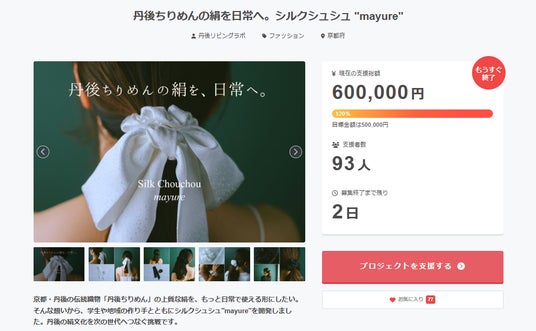 プロジェクト名:丹後ちりめんの絹を日常へ。シルクシュシュ「mayure」