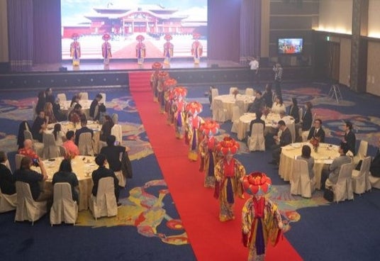 実証検証会では、実際の披露宴を想定した模擬披露宴形式で進行しました。世界遺産・中城城跡や識名園で撮影されたオープニングムービーの上映を皮切りに、龍神の舞、琉球舞踊「四つ竹」の群舞、新郎新婦役によるファーストダンス「かぎやで風」など、沖縄の伝統芸能を取り入れた演出を披露しました。「見せる披露宴」から「魅せる披露宴」へ。新郎新婦自身が物語の主人公となり、文化に触れ、表現することで、会場全体を琉球王朝の世界観に包み込む、体験型の婚礼演出を実証しました。