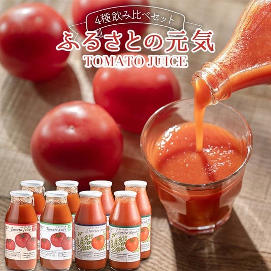 とまとジュース「ふるさとの元気」完熟トマトを贅沢に使用したトマトジュースは、素材本来の甘さと酸味のバランスが際立つ人気返礼品です。そのまま飲むのはもちろんのこと、その濃厚さから料理にも使えると、全国にファンのいる大人気ブランドになっています。