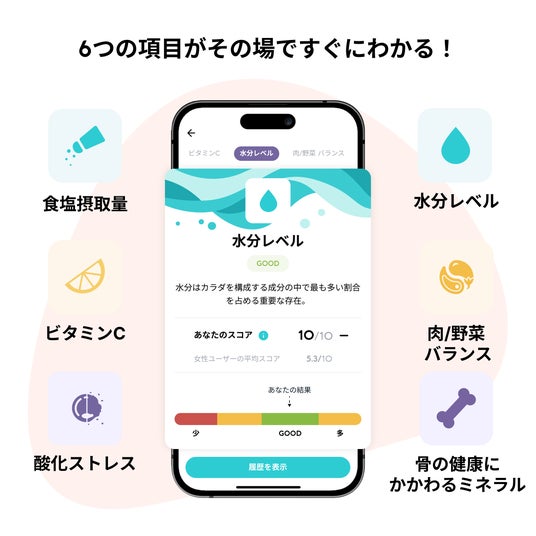 「Vivoo」は、ヘルステック先進国アメリカで2020年に誕生し、2024年9月から大塚製薬が日本での展開をはじめた、尿を用いた栄養モニタリングサービスです。 「Vivoo」は、専用の試験紙(ストリップ)に尿をかけ、アプリで読み取ることで、手軽に食生活の傾向に関わる6項目を測定でき、その結果はすぐにアプリ上で確認できます。 測定結果に応じて、管理栄養士が監修したアドバイスが提供され、健康的な生活習慣をサポートします。