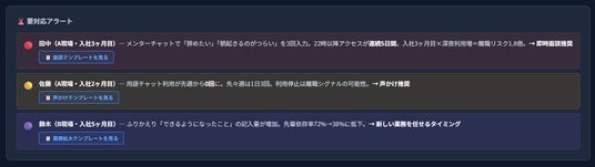 中度:離職意向のシグナルを検知した場合、成長の振り返りと具体的な相談手段を提案