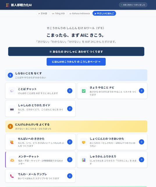日本AI施工管理合同会社(本社所在地:東京都渋谷区、代表:河東 里奈(カトウ リナ)、以下「当社」)は、建設業の施工管理職に特化した新人教育AI「新人即戦力化AI」のデモ版を本日公開いたしました。