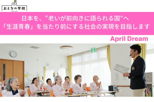株式会社おとなの学校は、「学校」という仕組みを通じて高齢者の意欲と尊厳を引き出し、“生涯青春”が当たり前となる社会の実現、および認知症になっても安心して暮らせる社会の構築を目指します。