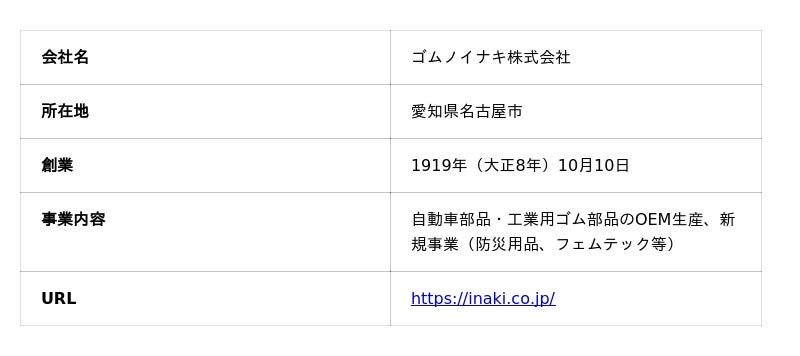 ゴムノイナキ株式会社 会社概要
