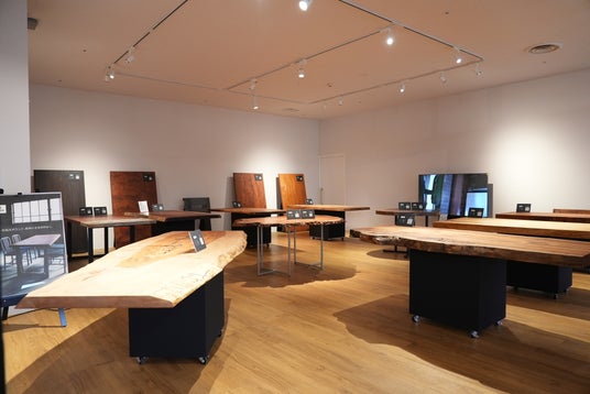 施主と一緒に素材を選べる場所。全国からレスキューされた一枚板を自由に見られる予約制ショールーム。