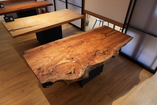 ダイニングテーブル、カウンター、デスク、店舗什器など、建築空間の中で主役となる要素を、一枚板という“素材”から選ぶことが可能です。