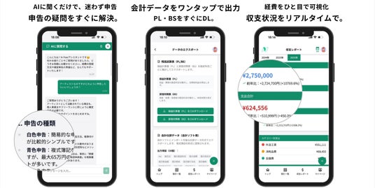 日々の経費管理においては、領収書やレシートをスマートフォンで撮影するだけで、内容を自動で読み取り、勘定科目を自動仕分け。入力の手間を大幅に削減し、会計知識がなくてもスムーズに記録を進めることができます。さらに、蓄積された売上・経費データをもとに、確定申告に必要な書類準備まで一気通貫でサポート。経費登録から申告準備までをスムーズに行うことが可能です。