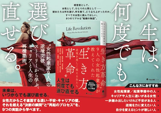 Genimo合同会社(本社:東京都、代表:大澤麻実)が運営する、長野県を拠点とする出版レーベル「YoLME出版(ヨルメ出版)」は、女性起業家9名の実話をまとめた書籍『9人の女性起業家が教えてくれた“生き方革命” ―逆境を美しく超える女たち―』を2026年4月7日に発売しました。