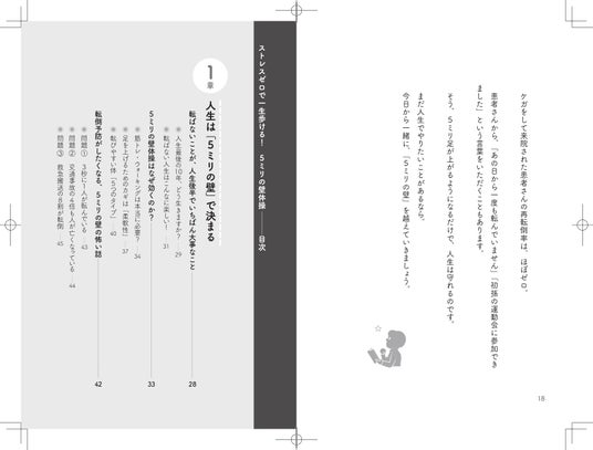 本書では、筋トレやウォーキングだけでは対応しきれない転倒リスクに対し、「わずか5ミリの段差でつまずかない身体」をつくるための具体的な方法を紹介しています。