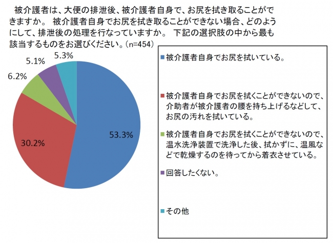 アンケートの結果、介護を受けている方の3割以上は、自分でお尻を拭き取ることができないということが判明した。