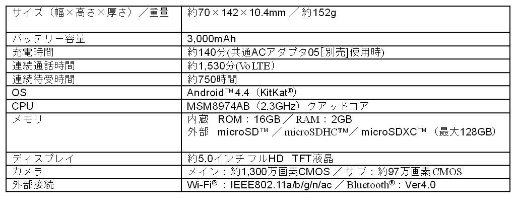 本製品は、スマートフォンならではの5.0インチの大画面に、視認性に配慮したわかりやすいホーム画面を搭載。従来の携帯電話で使い慣れたボタンによる安心の操作性を確保し、さらにはau VoLTEへの対応とともに京セラ独自の「スマートソニックレシーバー」で、より本来の声に近いクリアな音質で通話をお楽しみいただけます。カメラは高画素約1300万画素カメラを搭載し、撮影した写真は家族間SNSを通して簡単に共有し、楽しむこともできます。もちろん、防水※1、防塵※2、耐衝撃※3にも対応しているので、日常生活において安心してお使いいただけます。