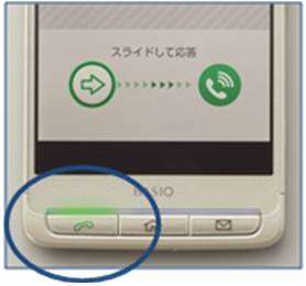 電話とメールは、本体正面に配置したボタンを押すだけで簡単に使えます。電話の着信時やメール受信時は、ボタン が光ってお知らせしてくれるので、光っているボタンを押せば、通話やメールの確認ができます。