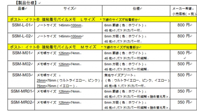 スリーエム ジャパン株式会社(本社:東京都品川区代表取締役社長:三村 浩一)は、携帯性に優れ、現代のビジネスパーソンの働き方にマッチした「ポスト・イット(R) 強粘着モバイルメモ」を2015年7月1日から発売します。