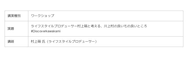 「今回参加者の皆様は、ひとつのプランを考えるにあたって、改めて自分の住む川上村という村のことを客観的に見て“キーワード”を切り出し、そしてそれを第三者に必要とされるアイデアへと変えてプランニングしていく、という作業をされたかと思います。その結果、参加者のかたからは「自分の毎日の暮らしは平凡だと思っていたけど、毎日にもっとチャンスがある気がした」「村のことがもっと好きになった」などといった声を聞くことができました。