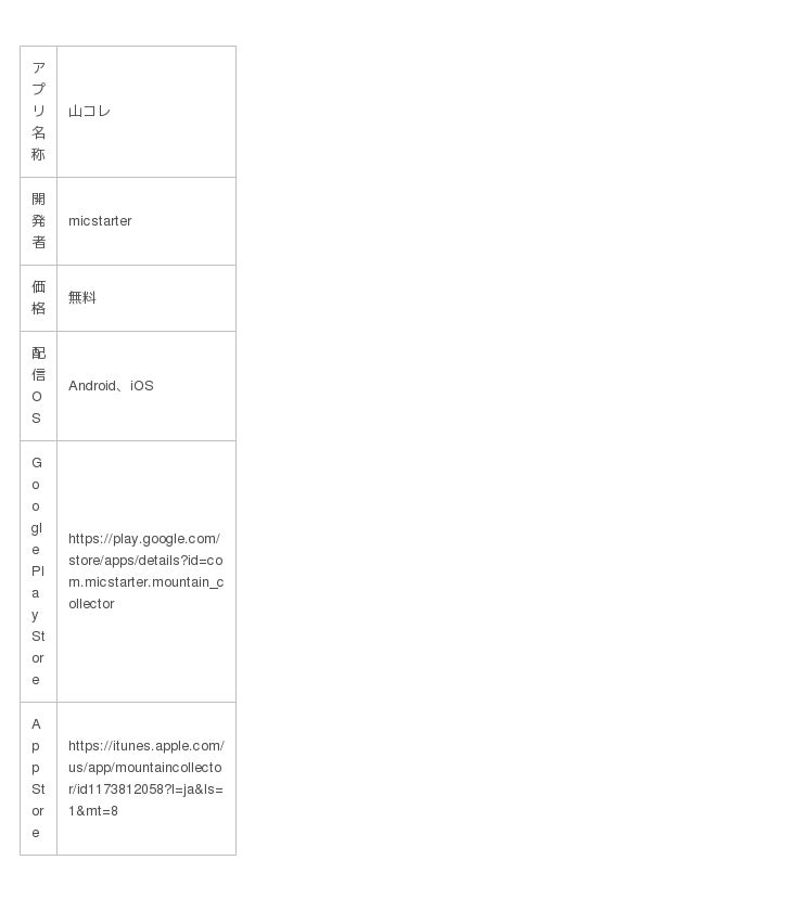 某社のモノづくり同好会、「micstarter」は、2016年12月1日、現在GooglePlayStoreで配信中の「山コレ」をAppStoreでも配信を開始したと発表した。
