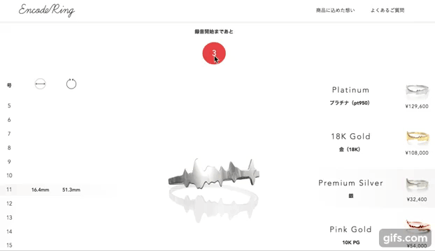 EncodeRingは想いを乗せた声からその場でアクセサリーをデザインできる独自の3Dシミュレーションシステムを開発しました。EncodeRingのウェブサイト(https://encodering.com)にPCやタブレット、スマートフォンから音声を吹き込むだけで、リングやネックレスなどのアクセサリーが3Dで確認できます。