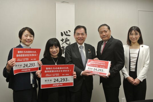 エンジン01文化戦略会議の「動物愛護委員会」は3月5日、次の動物愛護法改正によって「真に動物を守れる法制度」が実現することを求めて、多くの皆さんからいただいた署名2万4293筆を浅尾慶一郎・環境大臣に提出してきました。