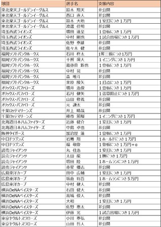 ■ハウスを支援する各球団の選手と支援内容について