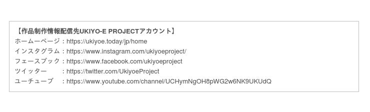 UKIYO-E PROJECT 畑中英里 03-5875-8830 info@ukiyoeproject.com