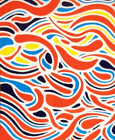 そのときは絵だけが友たちだった。彼女が描く線と面は、抽象画にもなりうるが、色彩は人々へ大きな印象を与える。