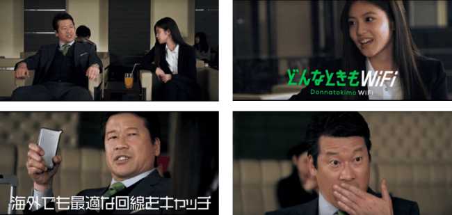 海外での捜査に向け空港で待ち合わせをしている先輩捜査官の佐藤さんと新人捜査官の今田さん。しかし佐藤さんは「信号にひっかかった」(アドリブ)という理由で、なんと4時間も大遅刻。もちろん空港で海外通信用のWiFiルーターをレンタルする時間もなく、今田さんは佐藤先輩に怒りをあらわに。一方の佐藤さんは、「どんなときもWiFi」であれば海外でもそのまま利用可能であるから、レンタル不要であると、得意な(?)英語を使い「どんなときもWiFi」の魅力を今田さんに伝えます。「海外でも頼りになるWiFi」にかけて「いつでも頼りになる先輩は?」と茶目っ気たっぷりに聞く佐藤さんと、そんな佐藤さんを無視して置いていく今田さんの表情にもぜひご注目ください。