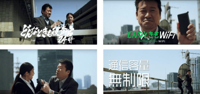 どんなときもWiFiのWEB-CM第1弾として放映する『どんなときも捜査官24時 無制限篇』・『どんなときも捜査官24時 海外篇』には、佐藤二朗さん・今田美桜さんが登場。今回お2人は、WiFiルーターが手放せない捜査官役として出演。ちょっぴり頼りにならない先輩捜査官役の佐藤さんとフレッシュな新人捜査官の今田さんのやりとりがコミカルなストーリーになっています。どんなときも使える「どんなときもWiFi」にちなんで、槇原敬之さんの「どんなときも。」を楽曲に使用した耳に残るWEB-CMになっています。