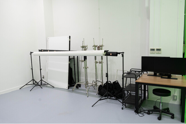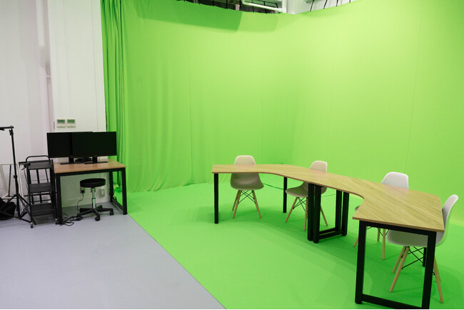 中野坂上スタジオでは、3面(背面、側面、床)のクロマキー・グリーンバックでの撮影が可能。