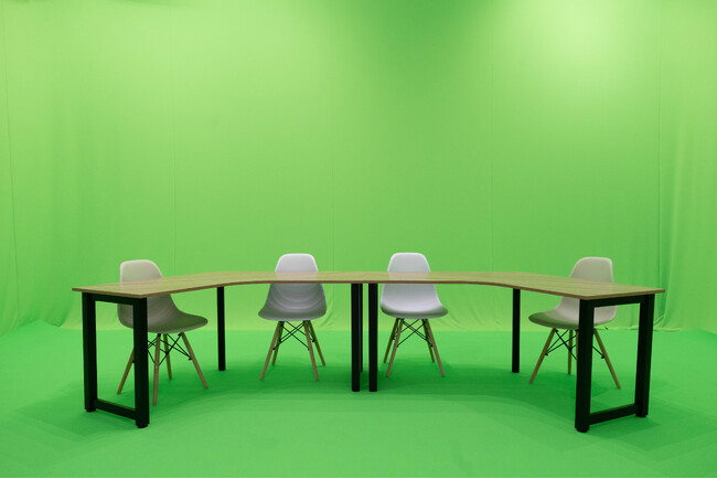 こちらにより、対談やインタビューなど複数人が入る撮影においてもクロマキー・グリーンバックを活用した撮影が可能となります。