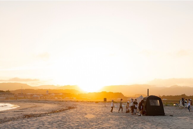高戸前浜海岸は、真っ白な砂浜と透き通るような青い海が魅力。サーフィンなどが楽しめる絶好のスポットとして人気です。そんな砂浜にアウトドア用のテントサウナを設置します。サウナ内から窓の外に目をやれば、太陽に照らされてキラキラと光る海が臨め、耳をすませば穏やかな波の音に心も体も癒されること必至です。