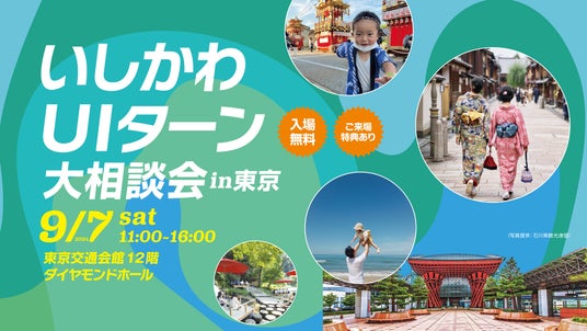 石川県の市町や企業、関係団体が集い、個別相談、セミナー、ワークショップなどを実施する「いしかわUIターン大相談会」を9月7日(土)、東京交通会館12階ダイヤモンドホールで開催します。