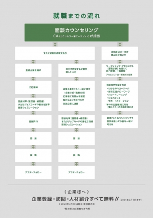 ・就職支援活動 カウンセリングやワークショップを行い、履歴書の書き方講座等を指導し、インターン先など を探します。 また、需給調整機関(わかものハローワークやジョブカフェ等)や登録企業の面接まで当社 キャリアコンサルティングが同行し、就職までのサポートをします。