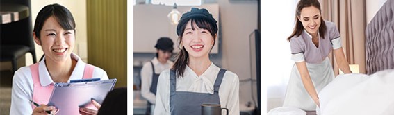 昨今の新型コロナウイルス感染症に対する水際対策の緩和により、訪日外国人がコロナ前の6割まで回復しています。コロナ禍での従業員削減などによる宿泊業界の人材不足を解決すべく、ホスピタリティ事業部は清掃スタッフやチェッカースタッフの人材採用や育成、業務の遂行など、客室清掃に関わる業務を一通り任せられる請負プランで宿泊業界を支援いたします。