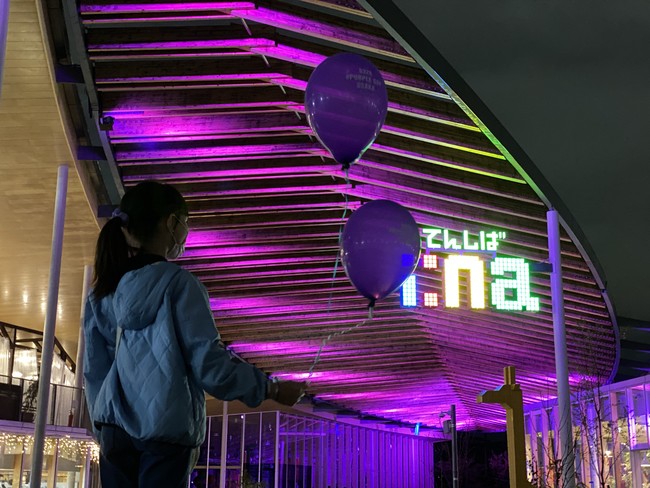 大阪のシンボル「てんしば」の全面協力のもと、3月22日(火)から28日(月)まで「てんしば i:na」と「OSAKA モニュメント」を紫にライトアップ。26日はてんしばに100個の紫のLED風船を飾ります。その模様はYouTubeLiveやインスグラムを通じて、世界の仲間に向け発信します。