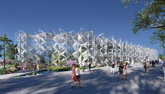 国際的なエンジニアリング、コンサルティング会社Arup(本社:ロンドン、代表:Alan Belfield)の日本法人であるオーヴ・アラップ・アンド・パートナーズ・ジャパン・リミテッド(代表:小栗新)は、有限会社永山祐子建築設計(東京都新宿区、代表:永山祐子)と協働し、リシュモン ジャパン株式会社 カルティエ(カルティエ)(本社:東京都千代田区、プレジデント&CEO:宮地 純)が出展する、2025 年日本国際博覧会(大阪・関西万博)「ウーマンズ パビリオン in collaboration with Cartier」(以下、ウーマンズ パビリオン)の構造設計、環境設備設計およびファサードコンサルティング業務においてサーキュラリティー(循環性)を積極的に取り入れた建築の実現に取り組みました。設計チームは仮設建築であることをポジティブに捉え、使用材料のサーキュラリティーに最大限配慮し、その目玉の一つとして、2020年ドバイ国際博覧会(以下、ドバイ万博)日本館のファサード鉄骨および膜材をそのまま再利用するという画期的な取り組みを実践しました。また、本体建物においても電炉鉄骨、仮設山留材鉄骨、低炭素型コンクリートといったリサイクル材・リユース材を主体とすることにより、サーキュラリティー確保とともに、通常の建築物に比べエンボディド・カーボンを約50%削減することに成功しました。
