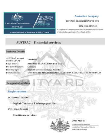 AUSTRACはオーストラリアの最も権威ある金融監督機構であり、マネーロンダリングとテロ資金供与を監視している。この機構からライセンスと認可を得たことにより、ビットヤードは豪州地区と世界各国の監督機構の法規に依拠していることを明確に証明したことになる。ニコル・ローズ氏率いるAUSTRACの協力のもと、ビットヤードはコンプライアンスに準じた、安全でシンプル、スピーディーな金融サービスを顧客に提供するとともに、デジタル通貨取引と送金サービス業務も開始する。