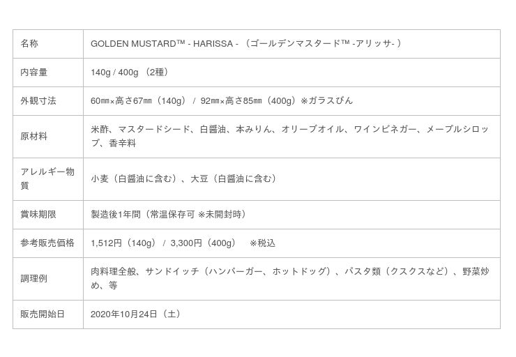 GOLDEN MUSTARD 株式会社(本社:東京都千代田区、代表取締役:北山太一朗)は、2020年10月24日より、新製品「GOLDEN MUSTARD (TM) - HARISSA - 」(ゴールデンマスタード(TM) -アリッサ- )の販売を開始します。