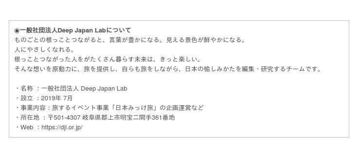 ・主催 :キノマチプロジェクト(NPO法人グリーンズ、株式会社竹中工務店、一般社団法人Deep Japan Lab)