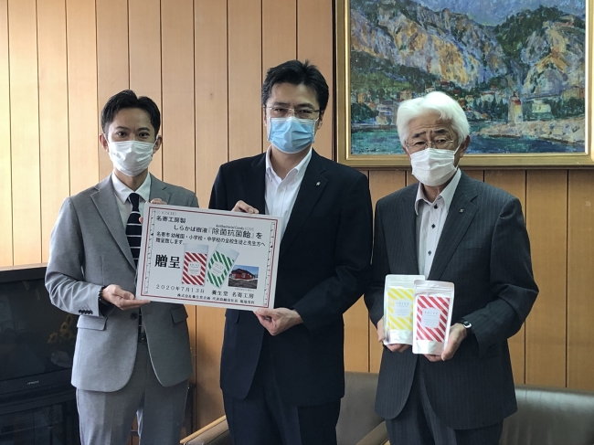 (株)養生堂企画の菊池代表取締役社長は、2020年7月13日(月)、北海道名寄市の加藤剛士市長を表敬訪問し、同社の白樺樹液採取加工と飴の工房がある北海道名寄市の幼稚園、小学校、中学校の生徒および教員他関係者の皆様へ新商品「KOIVE Natural Birch Candy」(白樺樹液飴)を贈呈いたしました。