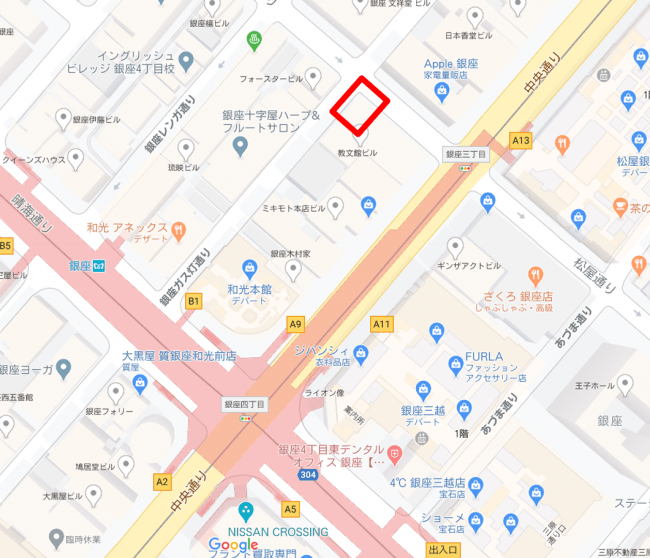 東京メトロ銀座線、日比谷線、丸ノ内線 「銀座」駅 A9出口より徒歩1分