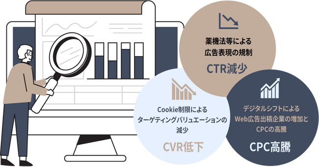 上記の通り、インターネット広告は急速に成長し、多くの企業がオンライン広告に力を入れてきました。その結果市場のプライシングはこの10年間で2-3倍になったと言われています。どの企業にとっても大きな課題ですが、特に、ダイレクト広告での集客がビジネスの要になっているビジネスを営んでいる企業にとっては死活問題と言えます。